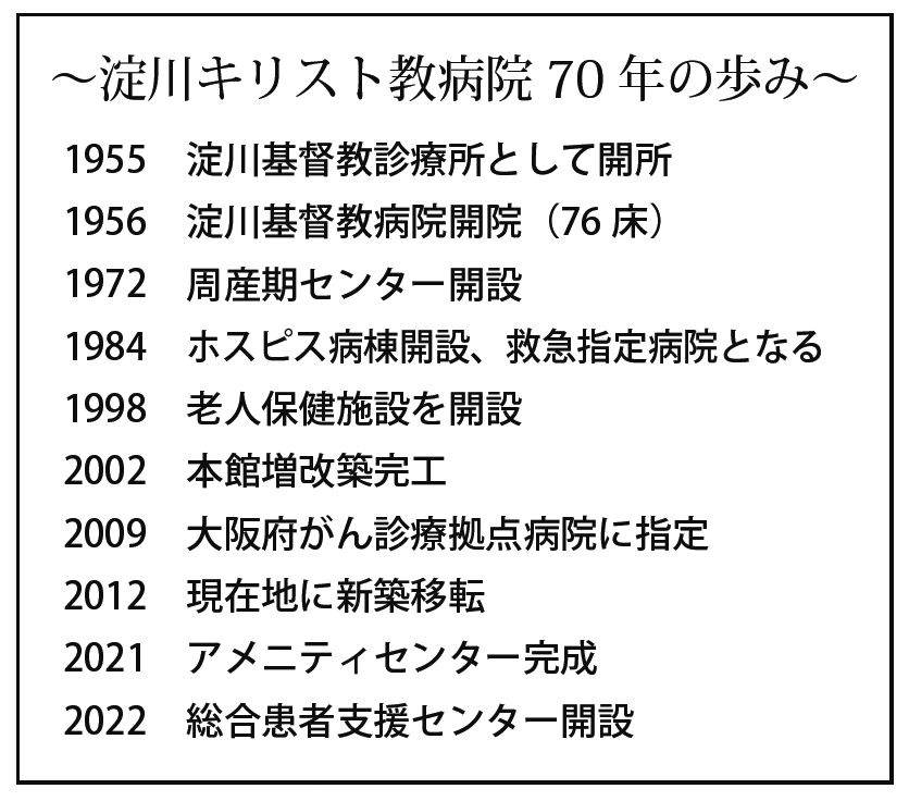 投稿公開日:2025-11-25投稿カテゴリー:周年記念 / 関西淀川キリスト教病院 70周年 笹子 三津留(ささこ・みつる)理事長に聞く「全人医療」の理念に基づき、質の高い医療を提供してきた、淀川キリスト教病院。身体の治療のみならず心をケアするという視点で患者に寄り添い、地域に根差し、貢献してきた。これまでの歩みや守り続けてきた理念について、笹子三津留理事長に聞いた。