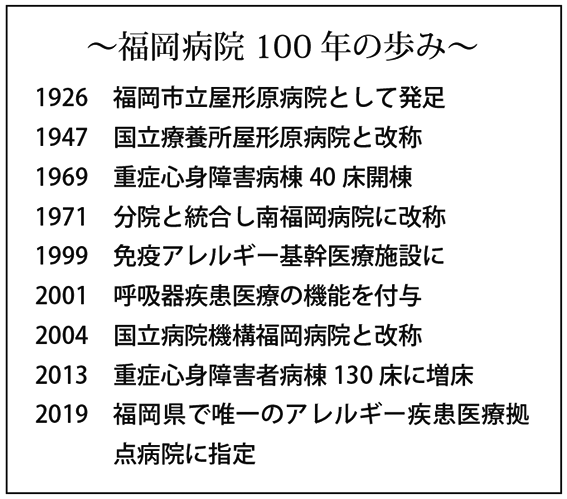 大正時代に結核療養所として設置された福岡市立屋形原病院を前身とする福岡病院。伝統を受け継ぐ呼吸器およびアレルギー・免疫に特化する同院はシームレス医療の推進にも力を注ぐ。院長の𠮷田誠氏に沿革や今後の展望を聞いた。